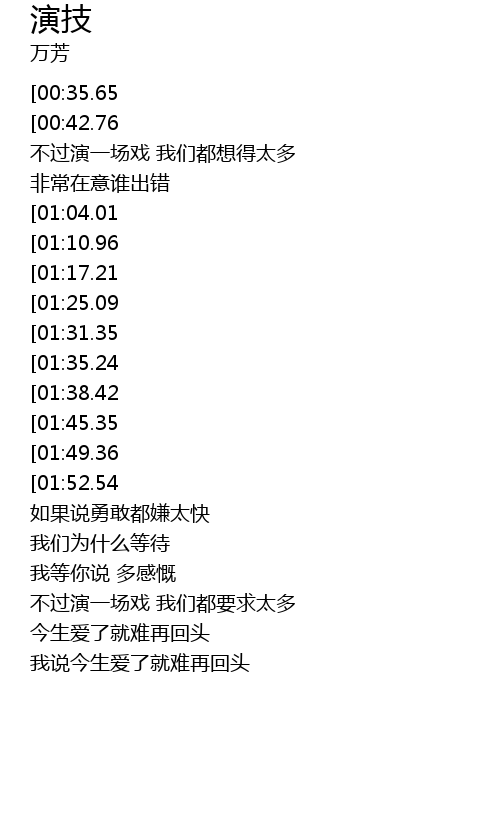 | [00:49.02] | 不过演一场戏 我们都想得太多 |