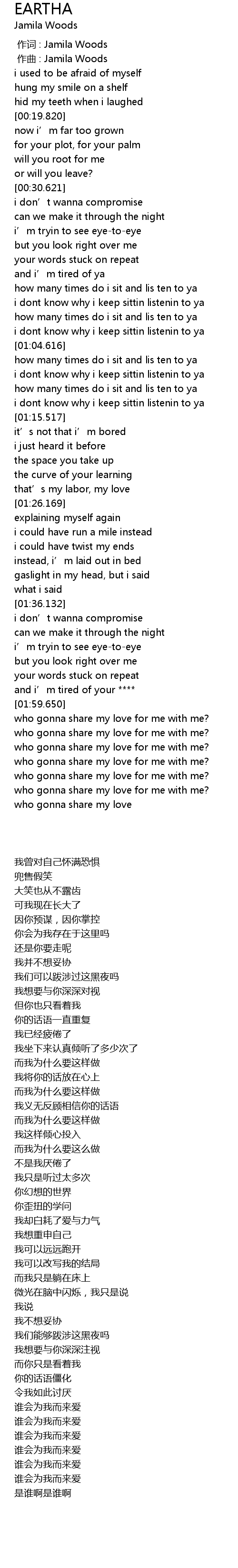 | [00:01.000] | zuò qǔ : Jamila Woods |