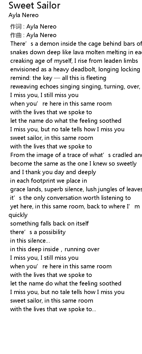 | [01:03.837] | sweet sailor, in this same room |