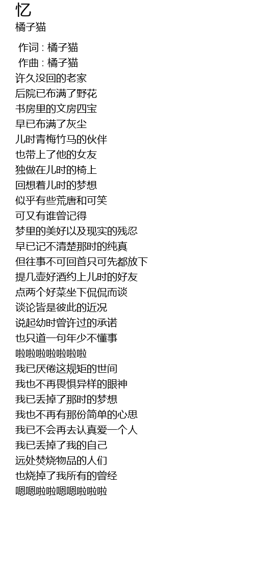 | [00:00.000] | 作词 : 橘子猫 |