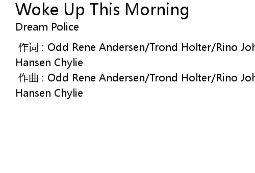 | [00:00.000] | 作曲 : Odd Rene Andersen/Trond Holter/Rino Johannessen/Ole Petter Hansen Chylie |