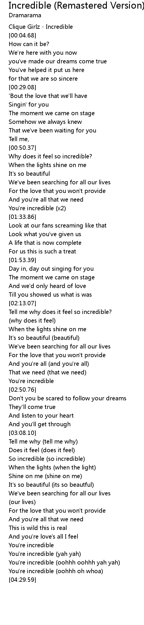You're incredible (oohhh oohhh yah yah) |