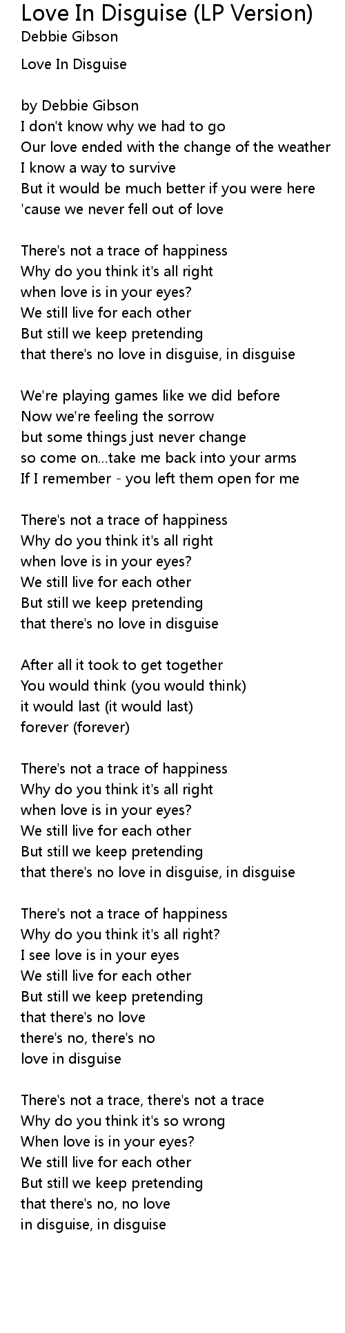 that there's no love in disguise, in disguise |