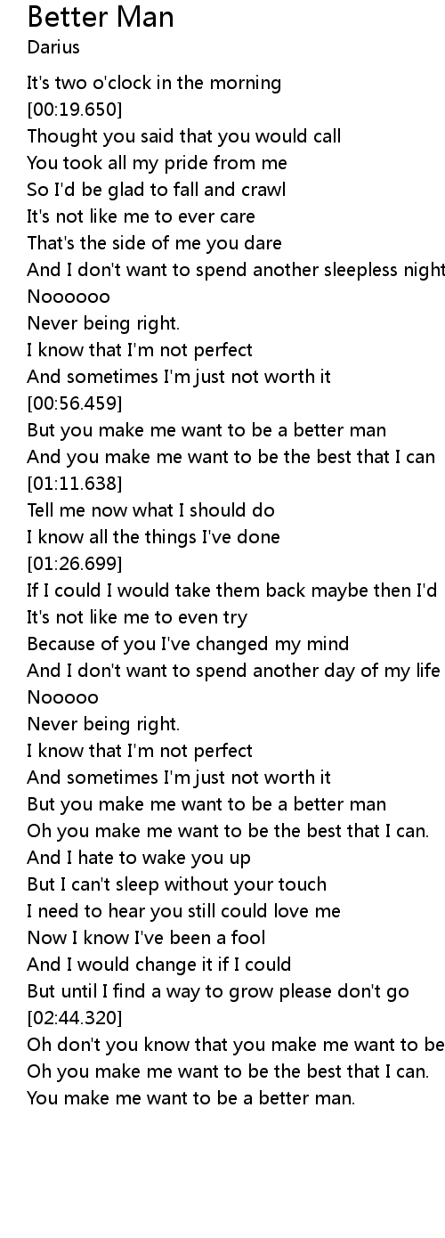 | [00:57.709] | But you make me want to be a better man |