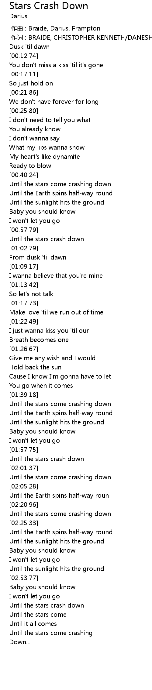 | [01:58.81] | Until the stars crash down |