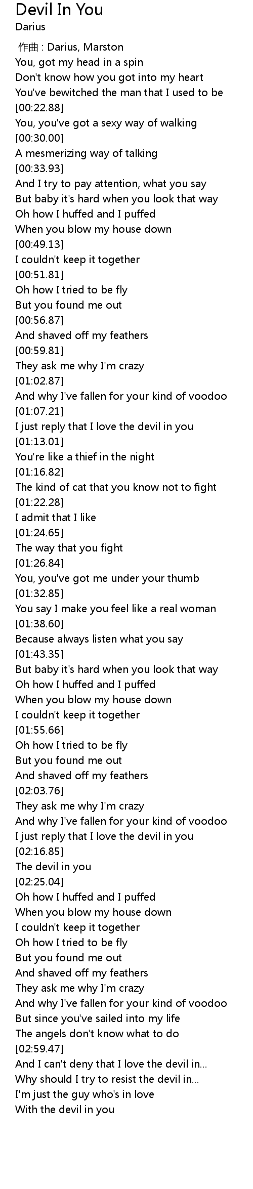 | [03:00.35] | And I can' t deny that I love the devil in... |