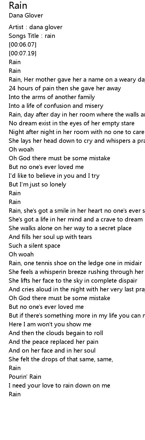 | [00:38.83] | Rain, Her mother gave her a name on a weary day |