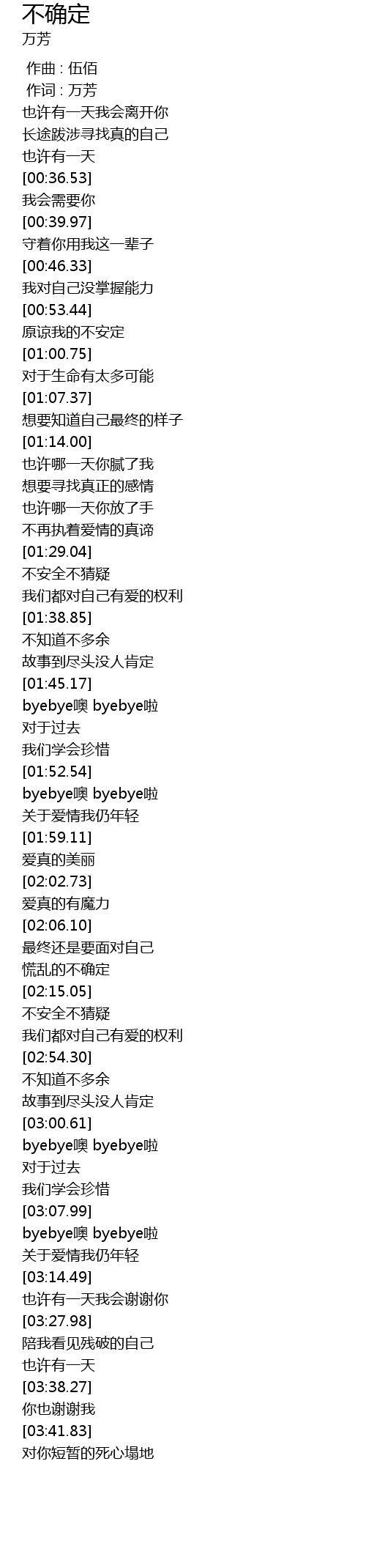 | [00:47.97] | wǒ duì zì jǐ méi zhǎng wò néng lì |