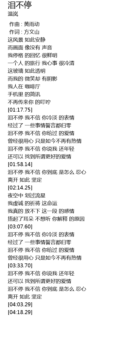 | [03:08.29] | 泪不停 我不信 你冷淡 的表情 |
