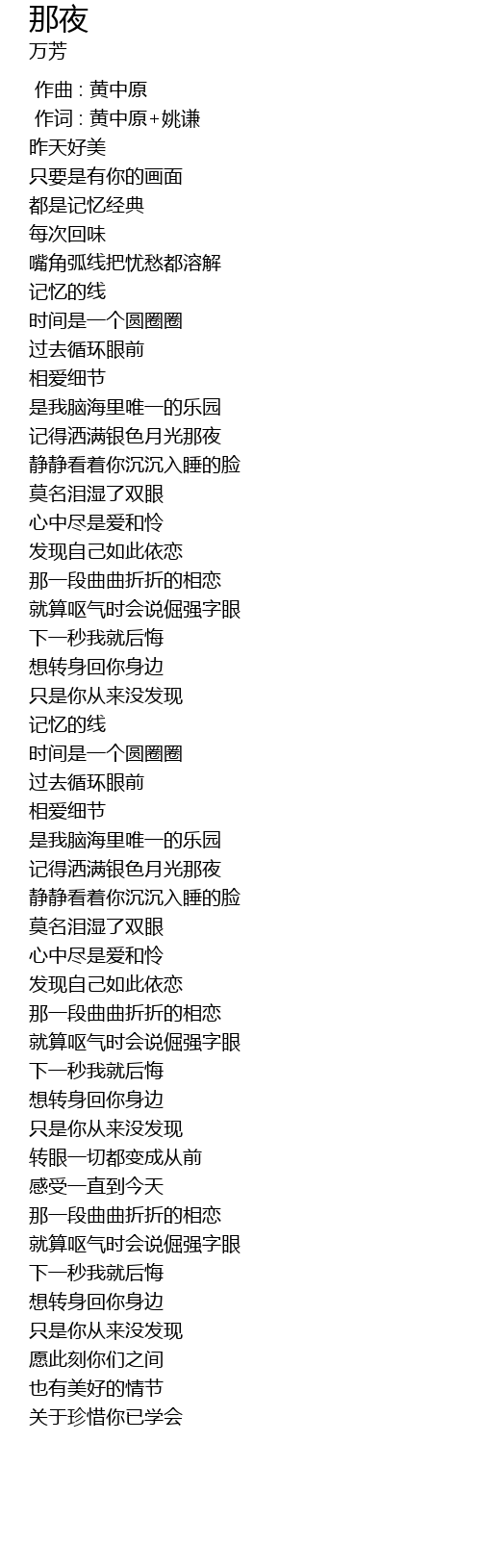 | [00:01.00] | 作词 : 黄中原+姚谦 |