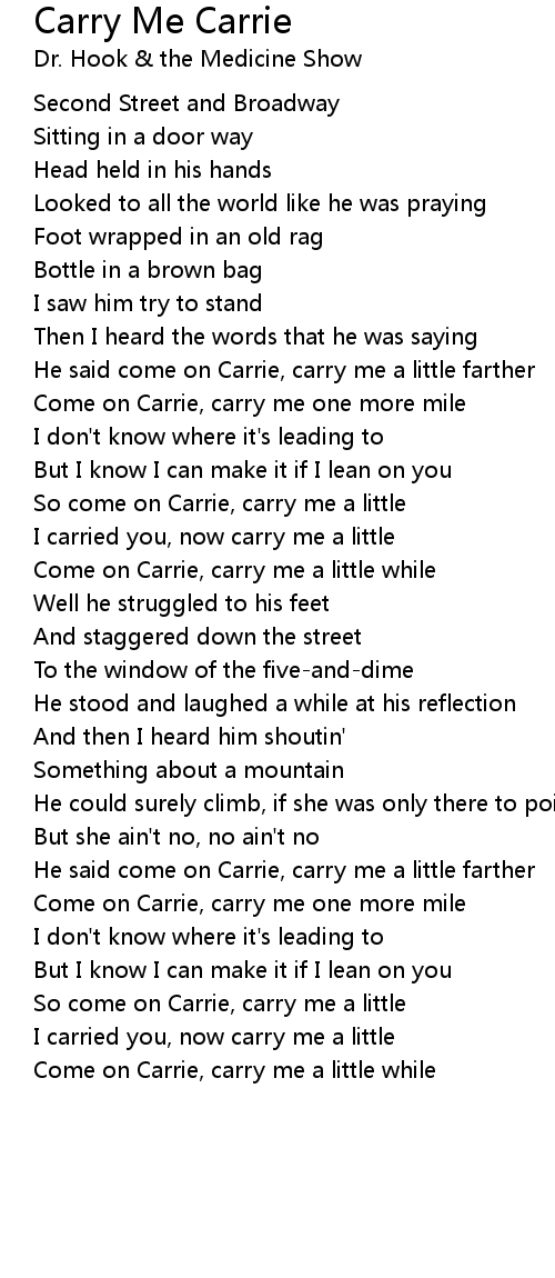 Come on Carrie, carry me a little while |