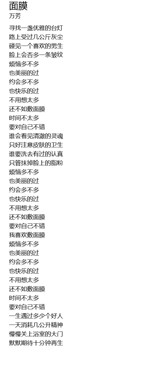 | [01:21.81] | 只好注意皮肤的卫生 |