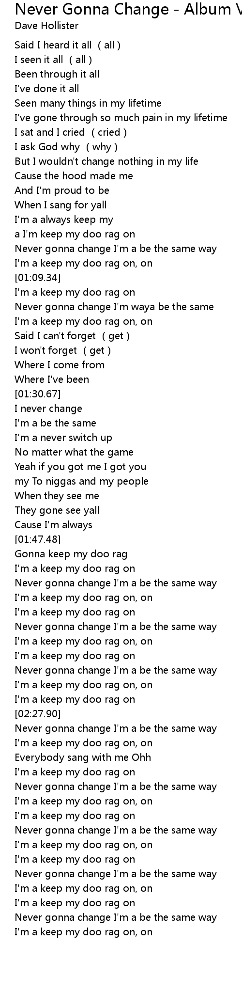 | [01:11.21] | I'm a keep my doo rag on |