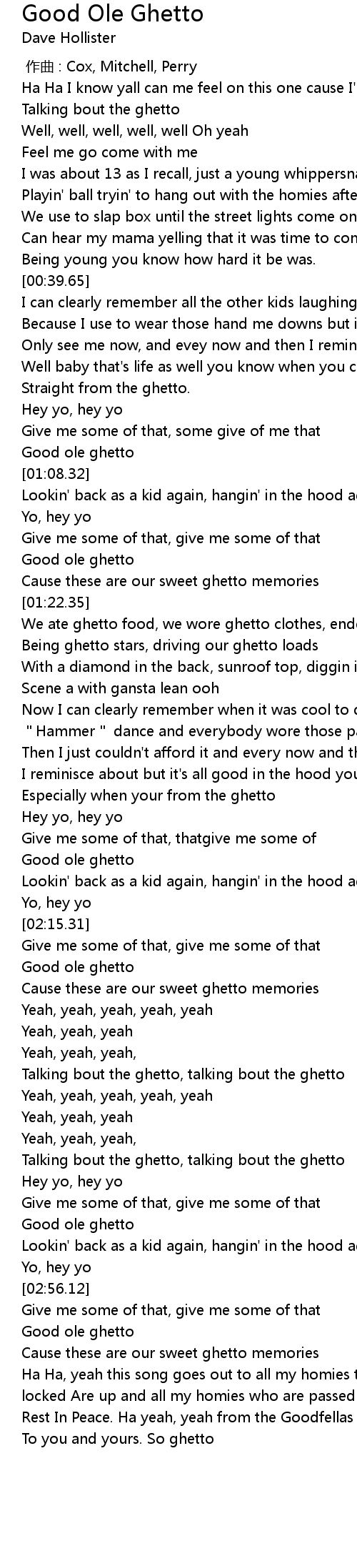 | [02:49.63] | Good ole ghetto |