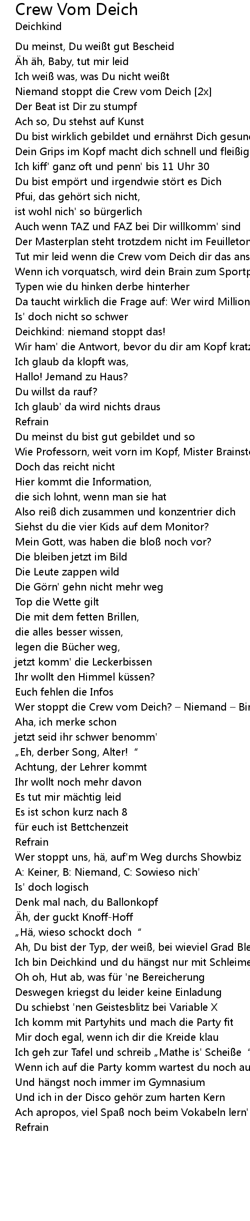 | Ich bin Deichkind und du h ngst nur mit Schleimern rum | |