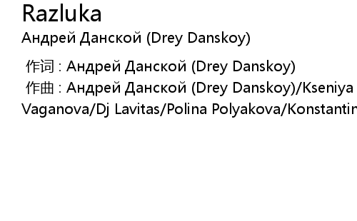 | [00:00.000] | 作曲 : Андрей Данской (Drey Danskoy)/Kseniya Vaganova/Dj Lavitas/Polina Polyakova/Konstantin Grachev |