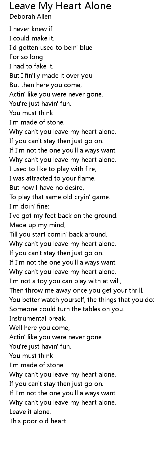 Why can't you leave my heart alone. |