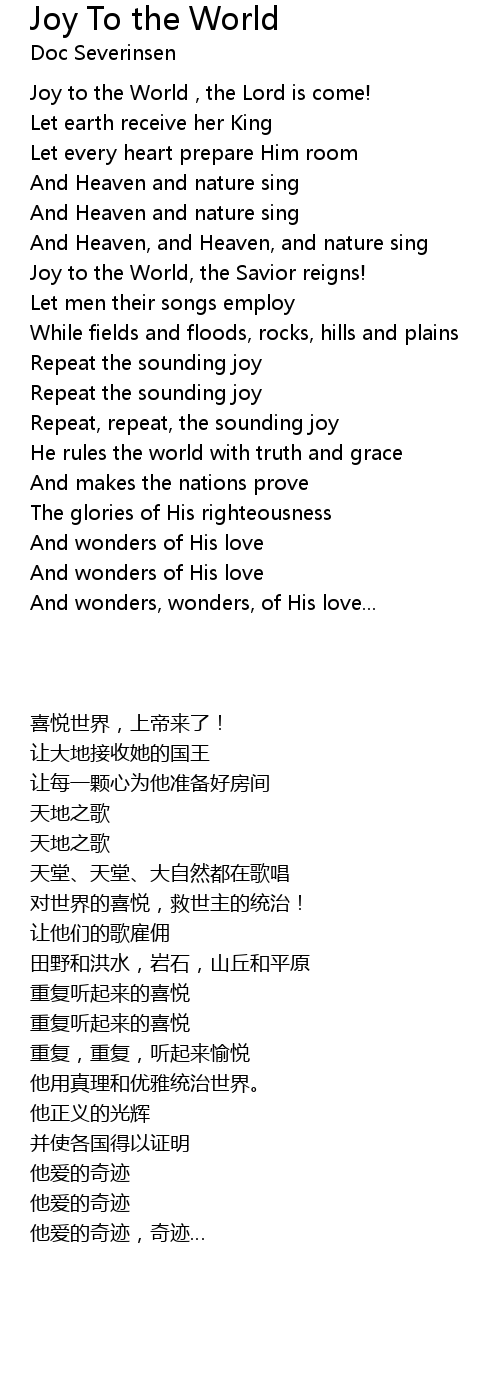 Joy to the World, the Savior reigns! |