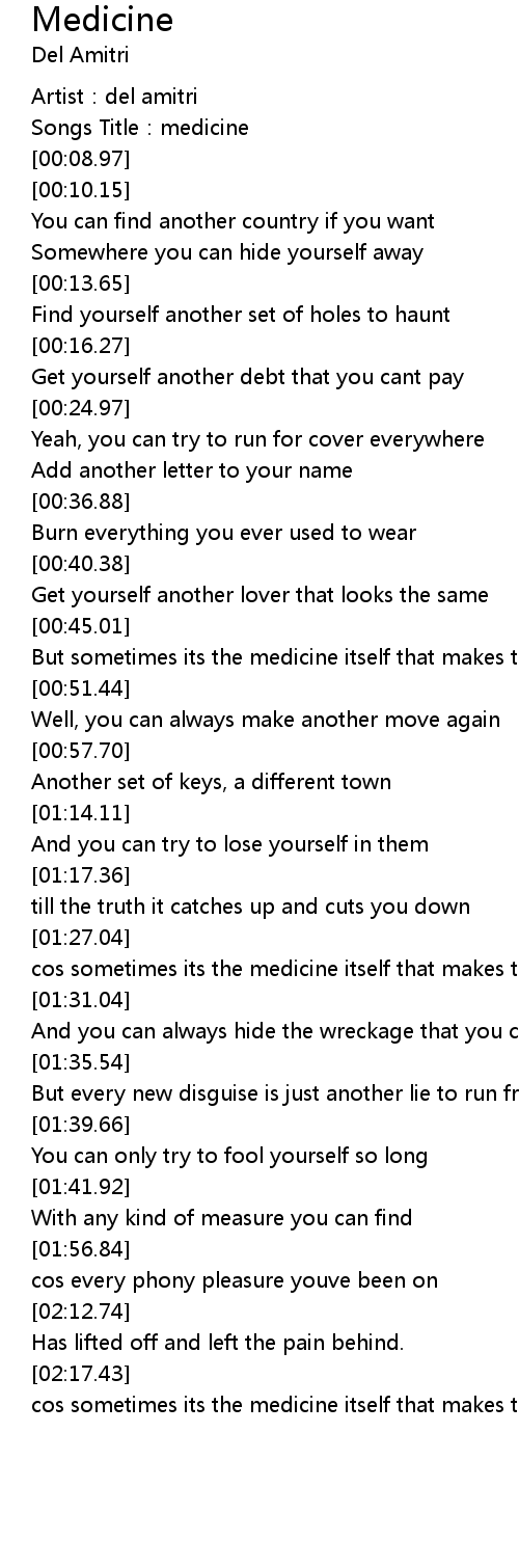 | [00:50.19] | But sometimes its the medicine itself that makes the pain |