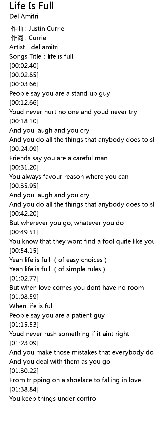 | [00:01.22] | Songs Title:life is full |