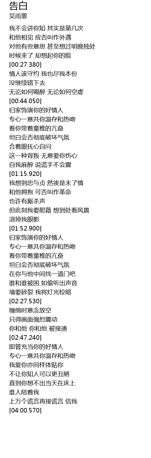 | [00:54.690] | 坦白会否彻底破坏气氛 |