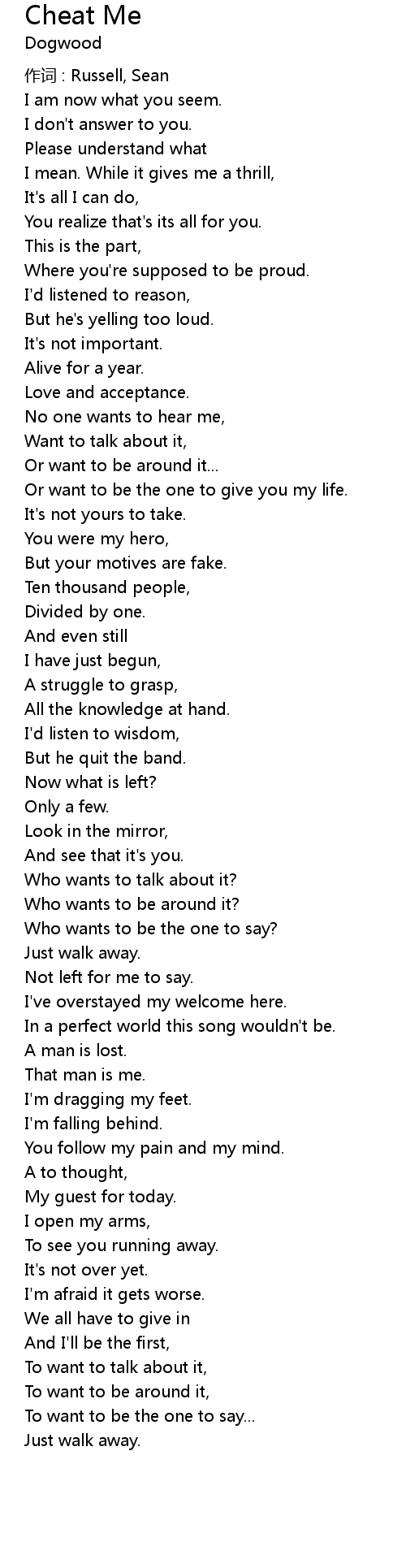 | 作词 : Russell, Sean | |