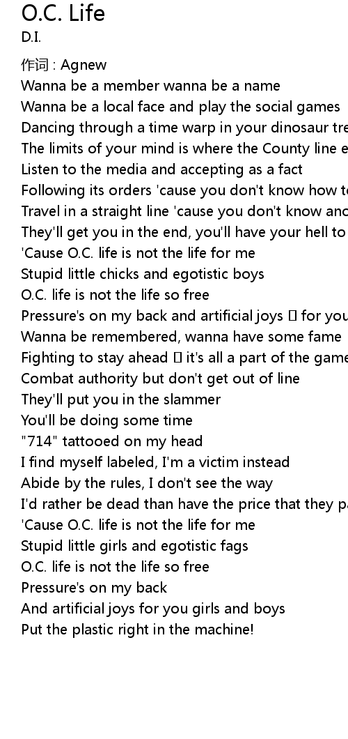 | ' Cause O. C. life is not the life for me | |