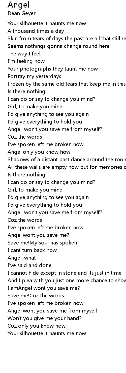 Angel wont you save me from myself |