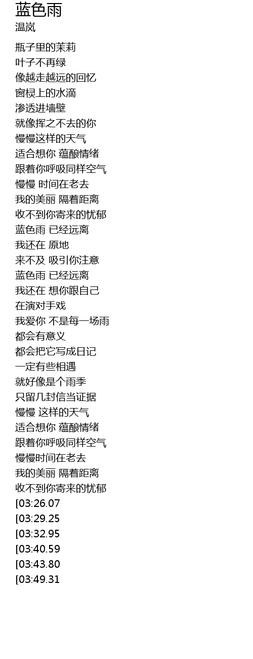 | [03:59.18][03:26.07] | 蓝色雨 已经远离 |
