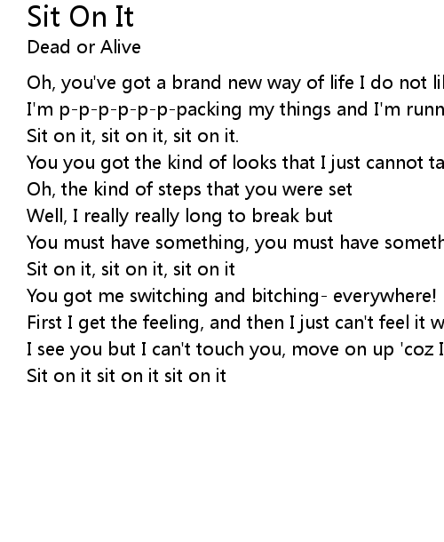 Sit on it, sit on it, sit on it |