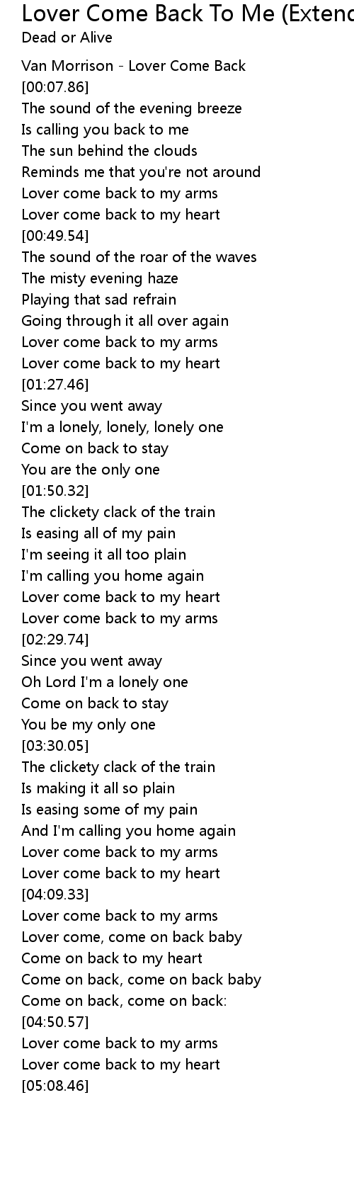 Lover come, come on back baby |