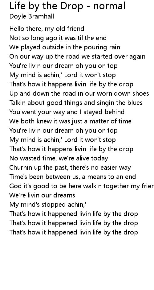 That's how it happens livin life by the drop |