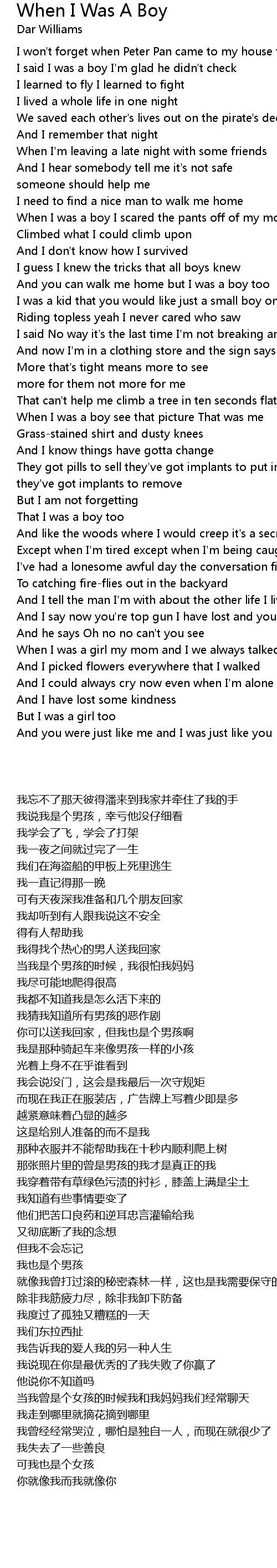 And you can walk me home but I was a boy too |