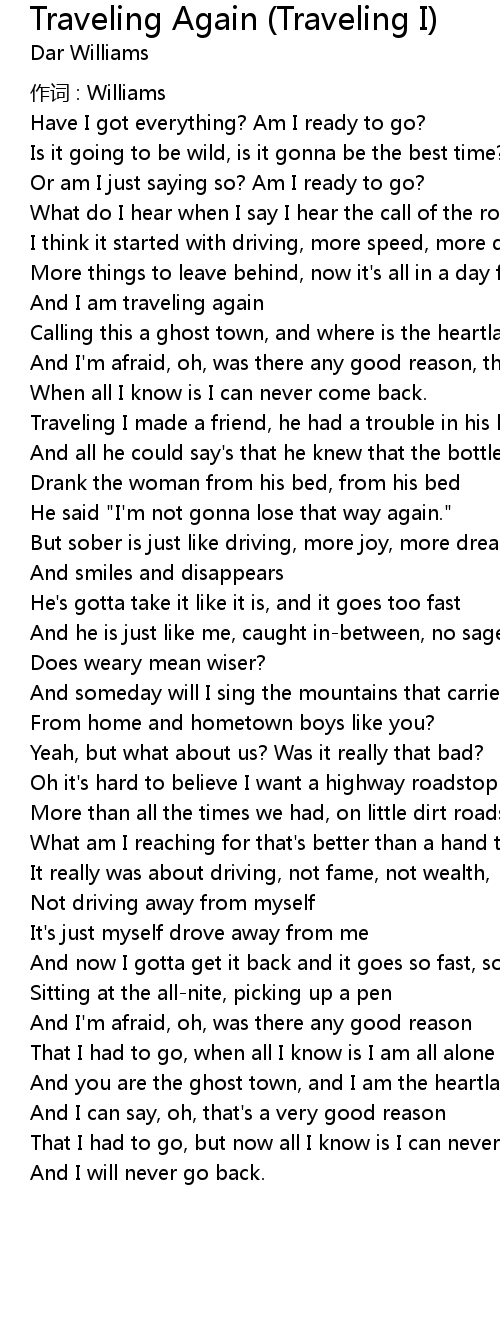 | And I am traveling again | |