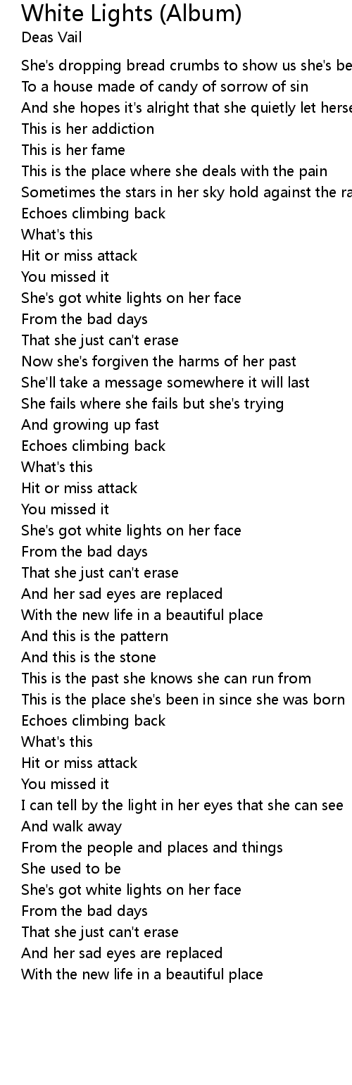 She's got white lights on her face |