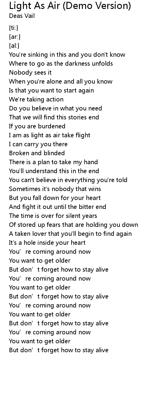 | [00:13.08] | You' re sinking in this and you don' t know |