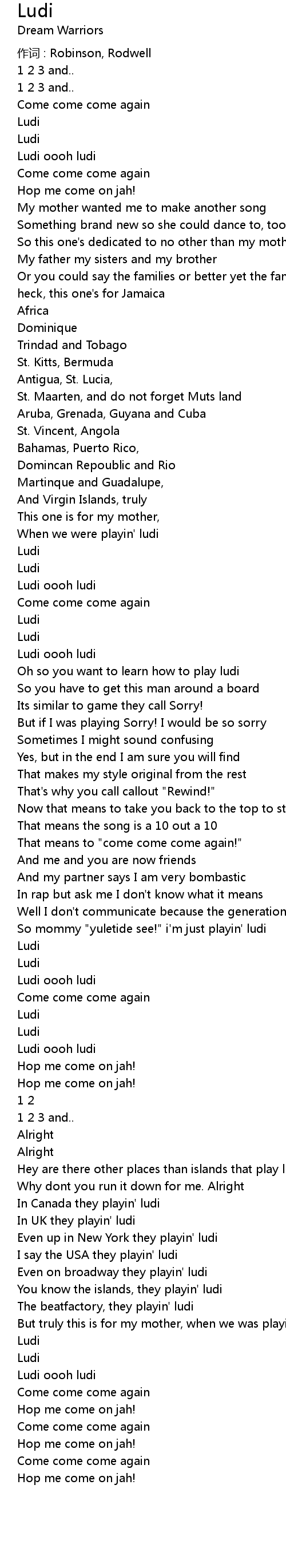 | You know the islands, they playin' ludi | |