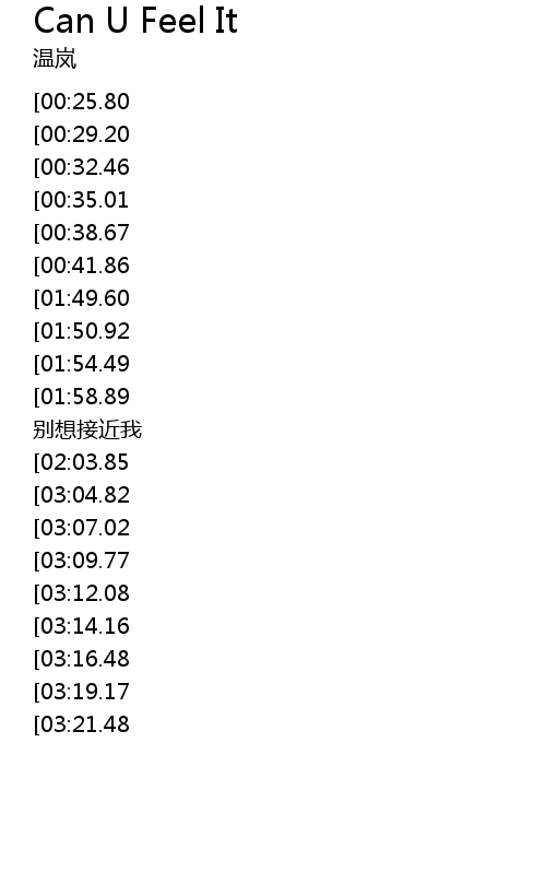 | [03:35.21][03:16.48][02:20.39][01:14.17] | Can U Feel It lu biao zhi zhe nan guo |