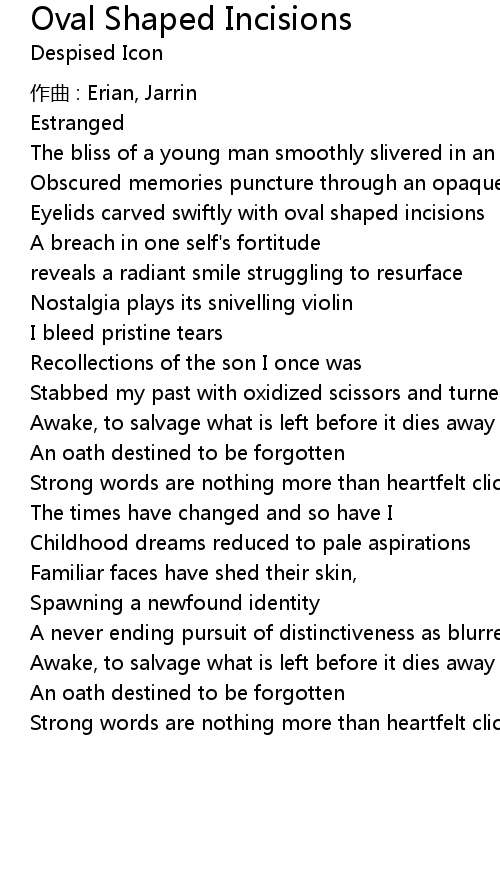 | Song | Oval Shaped Incisions |