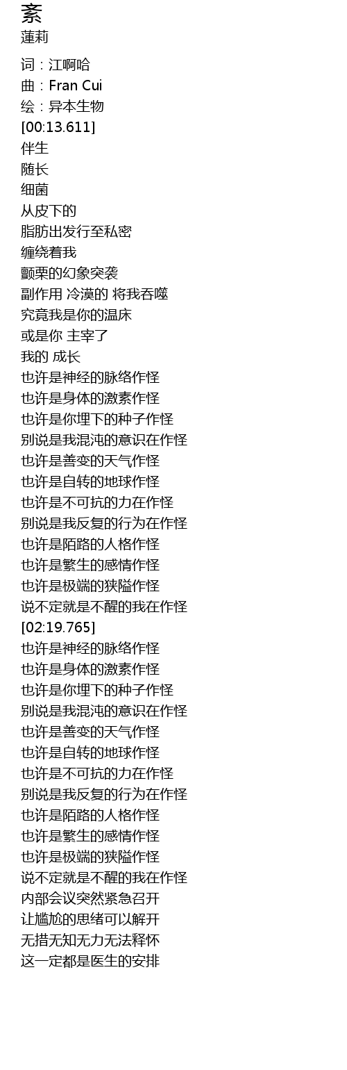 | [00:04.779] | 曲:Fran Cui |