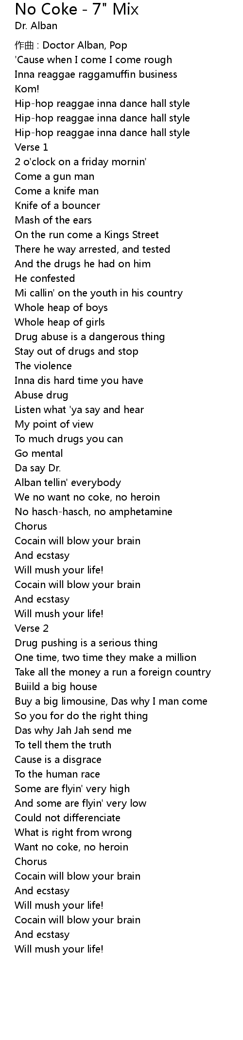 | Want no coke, no heroin | |