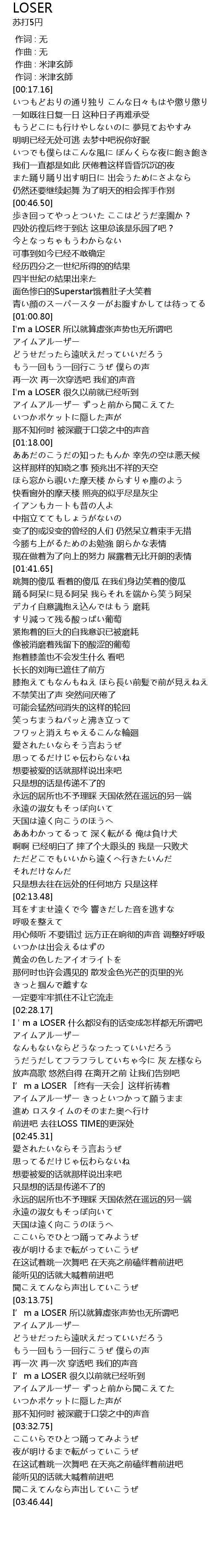 | [03:17.19] | I' m a LOSER suo yi jiu suan xu zhang sheng shi ye wu suo wei ba |