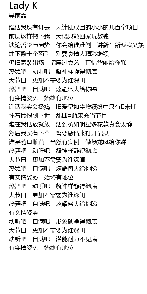 | [02:42.18] | 热舞吧 自满吧 炫耀盛大给你睇 |