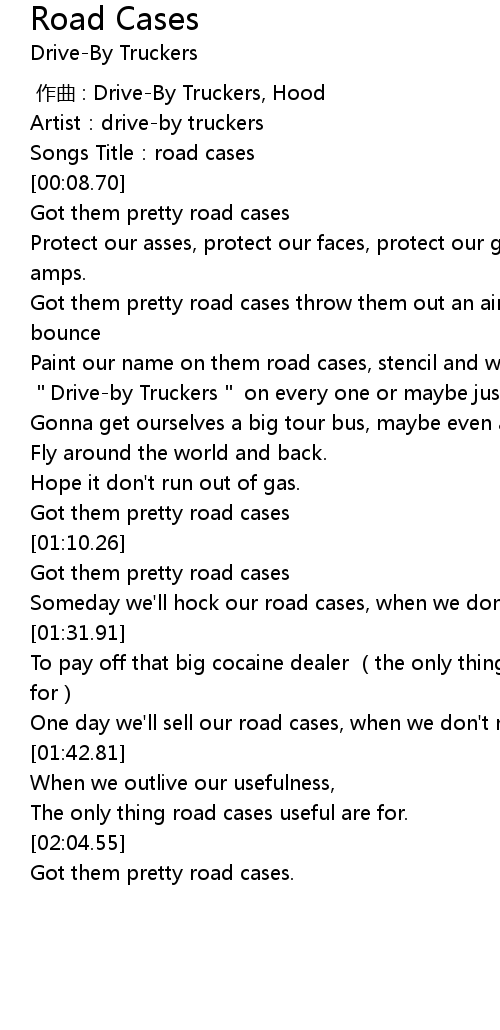 | [00:49.17] | "Drive-by Truckers" on every one or maybe just "DBT" |