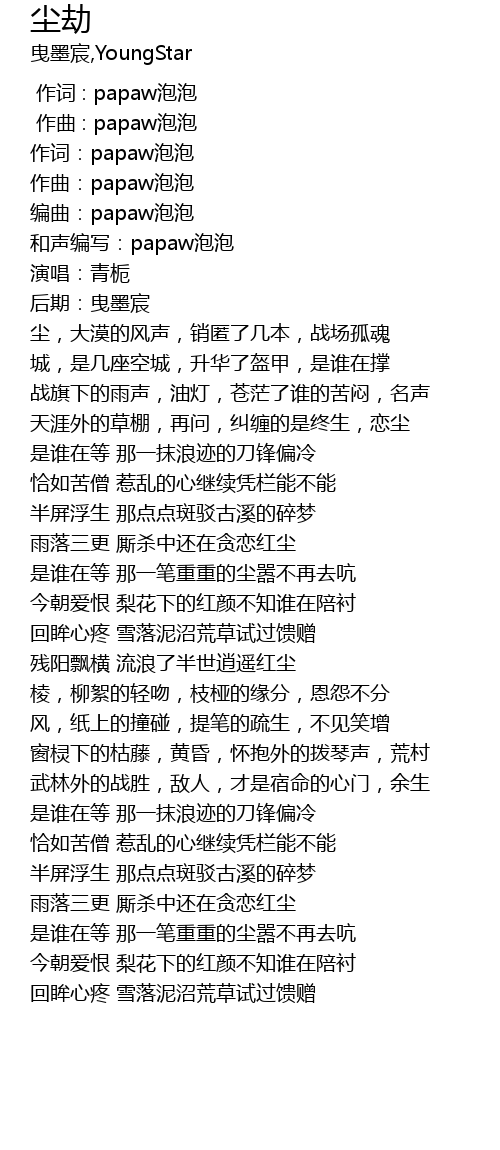 | [03:24.985] | 雨落三更 厮杀中还在贪恋红尘 |