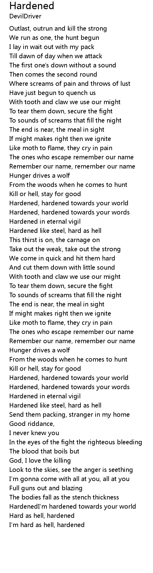 Hardened like steel, hard as hell |