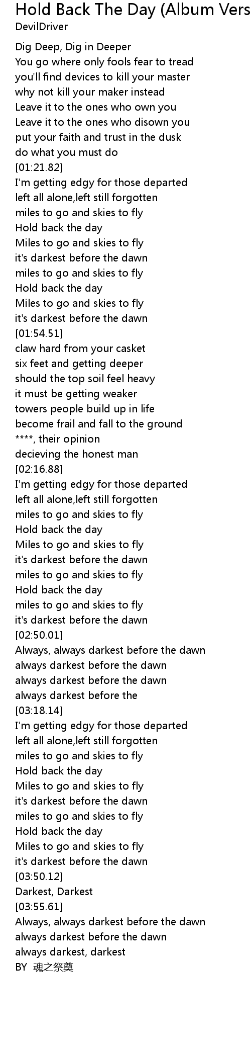 | [01:01.07] | Dig Deep, Dig in Deeper |