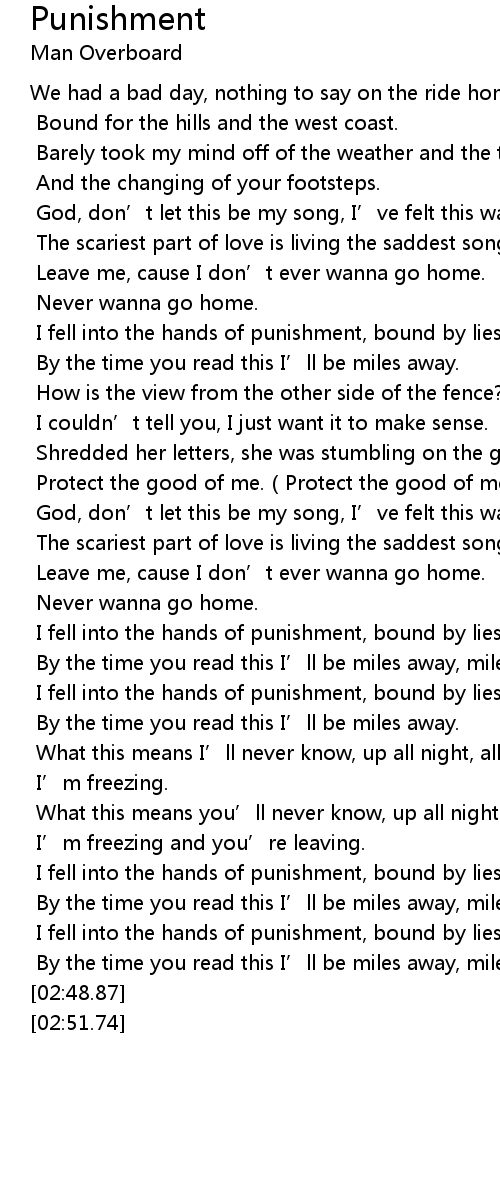 | [02:44.05] | By the time you read this I’ll be miles away, miles away |