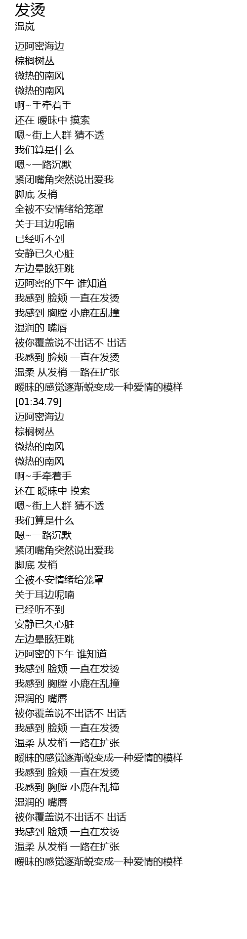| [01:18.79] | 我感到 脸颊 一直在发烫 |