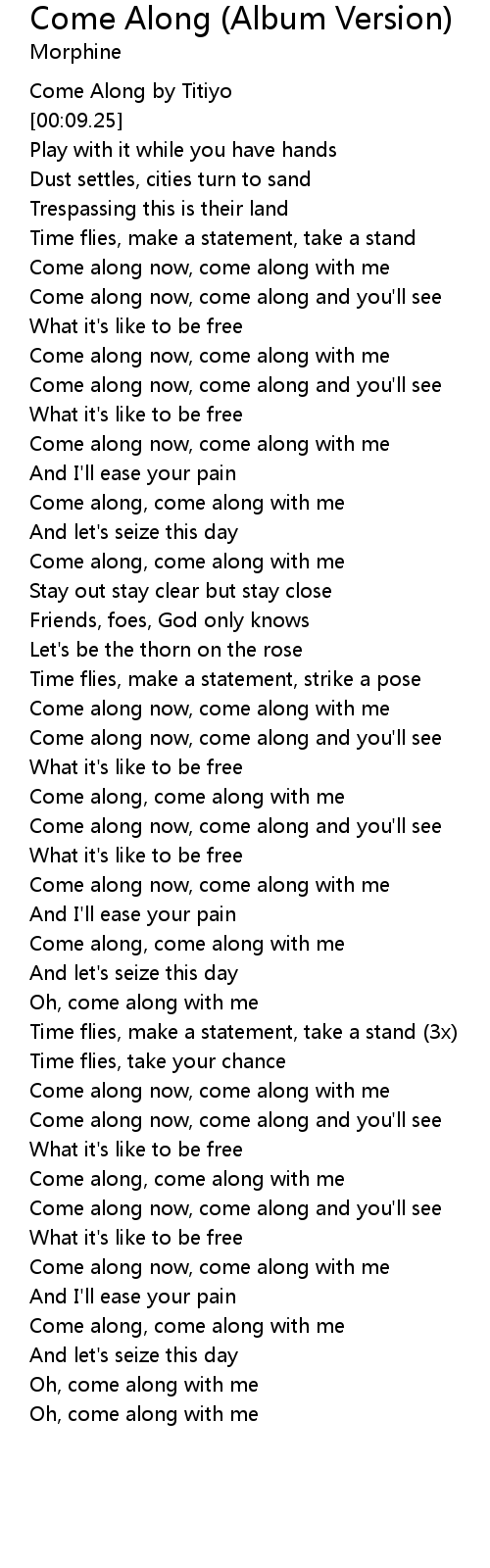Come along now, come along with me |